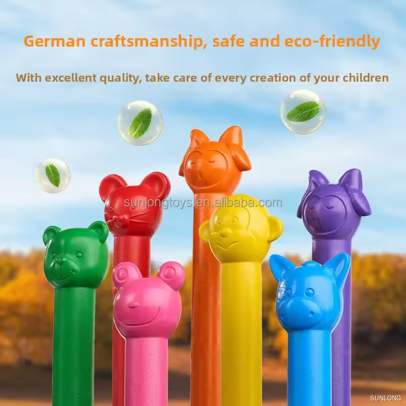 SUNLONG 12-Color Plastic Zoo-Themed Crayons Easy-to-Clean Drawing Toys Set That Won't Get Your Hands Dirty