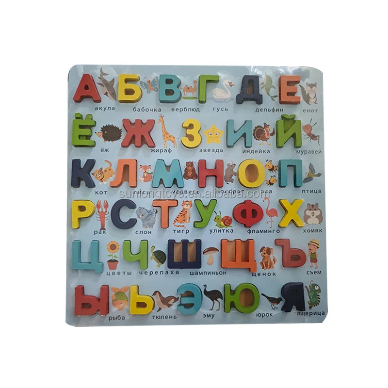 Sunlong DIY Educational Toy Small Wooden Language Puzzles for Children Includes Numbers Shapes for Capitalization Box