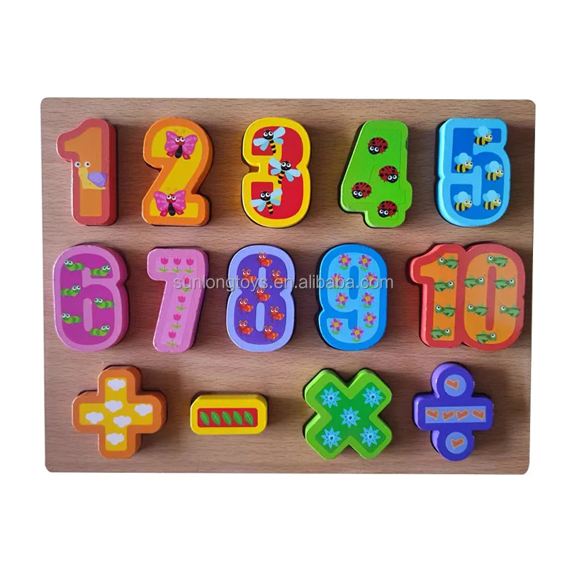 Sunlong DIY Educational Toy Small Wooden Language Puzzles for Children Includes Numbers Shapes for Capitalization Box