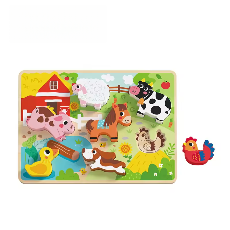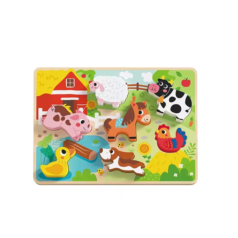 Farm 3D Chunky Puzzle Wooden Toy Animal Wooden Puzzles for Toddlers Educational Wooden Puzzle Games