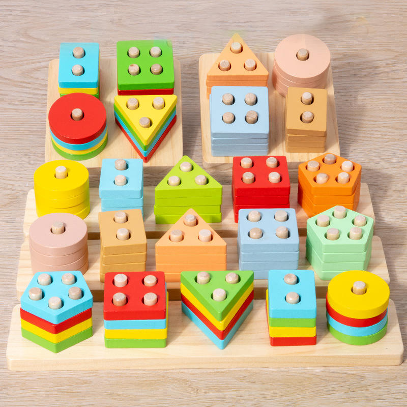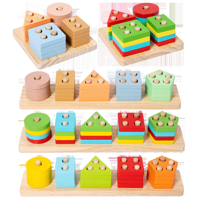 Montessori Early Education Cognitive Building Blocks Smart Five-Column Wooden Geometric Shape Set Cross-Border Educational Toys
