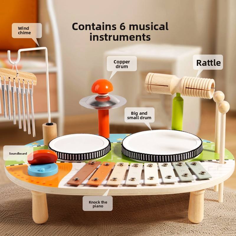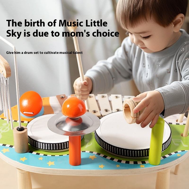 Multifunctional Wooden Drum Set Wind Chime Cross-Border Percussion Instrument for Children's Music Enlightenment Early Toys