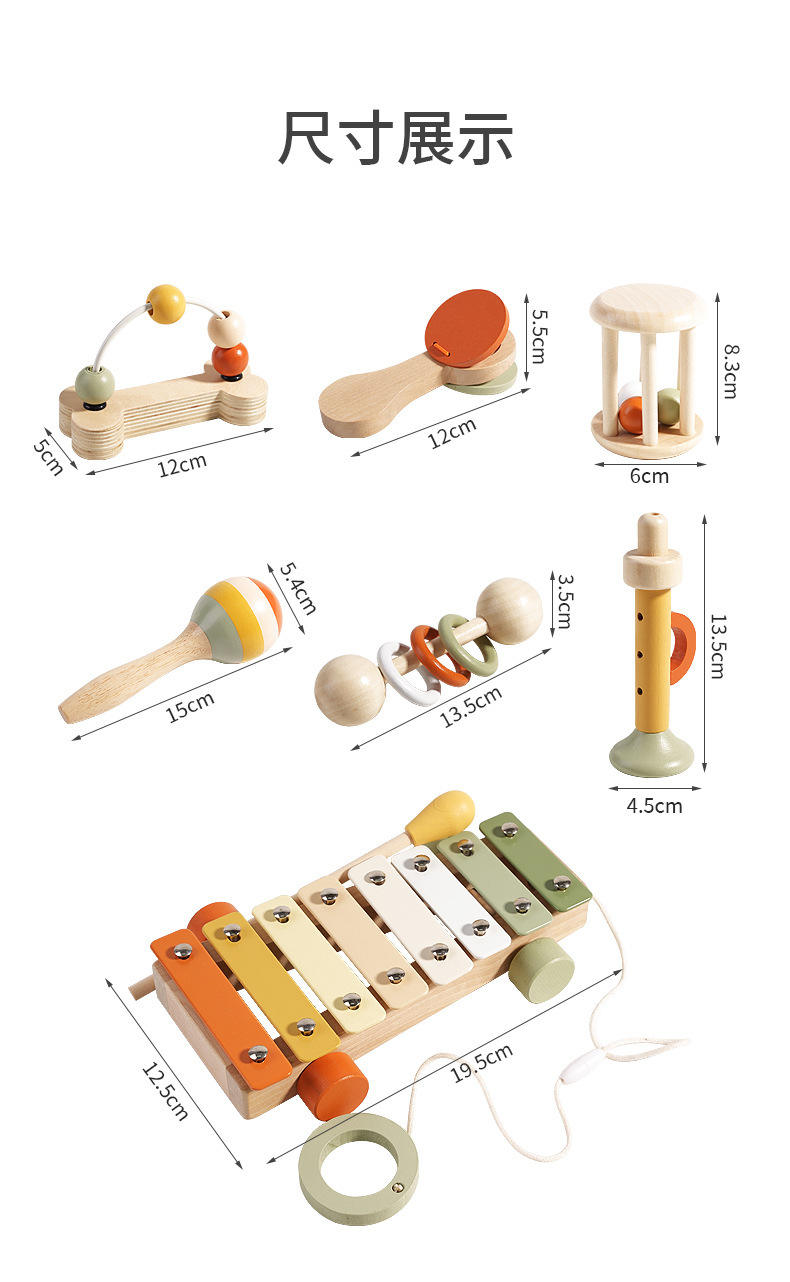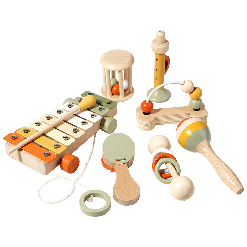 Customized Soft Wooden Rattle Set for Baby's Early Education Montessori Orff Musical Instrument for Grasping Toy